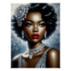 Esta poster apresenta uma pintura de uma beleza maravilhosa e rica em melanina no estilo estético Velho de Hollywood. A linda mulher negra tem lábios vermelhos e veste vestido de prata com joias de diamante e acessórios de cabelo. Um retrato dramático e brilhante de uma americana africana, afro-britânica, afro-Caribe, africana, etc.