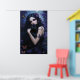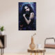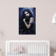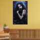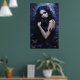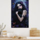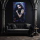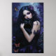 Cartaz da Mulher Gótica com Gato Preto. © Dark Heart Desires. Uma linda Mulher Gótica de longos cabelos pretos está rodeada por flores e borboletas. Ela está abraçando um gato preto.