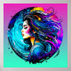 Mulher bonito com arte azul, turquesa, azul, roxa, lacrimejante, amarela e vermelha colorida ai feita em uma vibração herreal mística etérea.