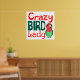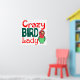 Um desenho fofo de um pássaro com cara de pêssego com texto: "Senhora de Pássaro Louca" em fontes divertidas únicas. Ideias de presentes perfeitas para amantes de pássaros, parronas, especialmente mães de pássaros que se chamavam de loucas mulheres de pássaros. Disponível como t-shirts, canecas, bolsas e muitas outras mercadorias. :)