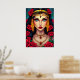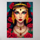 Poster Mulher Mística com Olhos Azuis e Rosas vermelhas