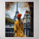 Poster Mulher na Torre Eiffel, na Bathrobe Amarela