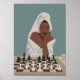 Poster Mulher negra jogando xadrez, estilo boho.
