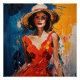 Os pincéis expressivos dançam através da canvas, capturando o movimento de uma mulher num vestido de cocktail vibrante e chapéu de palha. Surreal e enérgica, essa peça incorpora a essência do expressionismo com suas cores vivas e sua composição dinâmica.