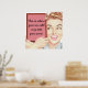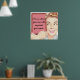 Poster com uma ilustração vintage dos anos 50 de uma mulher segurando um sinal. Personalize-o com o seu próprio texto e cor de fundo, pressionando o botão personalizar. Legal!