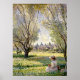 "Mulher Sentada sob os Willows" captura um momento tranquilo na natureza, onde uma figura repousa sob a cobertura graciosa de árvores salgadas. Esta trabalho de arte explorava os efeitos da luz e da atmosfera, epitomiza o domínio na captura de momentos fugazes da beleza do dia a dia. No primeiro plano, a figura de uma mulher é representada numa postura relaxada, talvez lendo ou contemplando, cercada por um mago verde e suavemente balançando galhos dos salgueiros. As pinceladas são fluidas e expressivas, transmitindo a maciez das folhas e o jogo de luz filtrando pela folhagem. A cena está imbuída de um senso de serenidade e solidão, já que o ambiente tranquilo envolve a figura em um abraço pacífico. A composição convida os espectadores a mergulharem no ambiente natural, onde a interação da luz e da sombra cria um contraste dinâmico e adiciona profundidade à cena. Acima, o céu se estica de forma expansiva, pintado em tons de blues e brancos macios, com nuvens sábias acrescentando o senso de abertura e tranquilidade. A atenção meticulosa aos efeitos atmosféricos captura as constantes mudanças de nuances de luz e clima, melhorando a qualidade imersiva da pintura. No geral, "Mulher Sentada sob os Willows" exemplifica a habilidade de evocar um humor e evocar um senso de lugar através de um estilo impressionista distinto. A pintura convida os espectadores a pausar e apreciar a beleza eterno da natureza e o silêncio encontrado em momentos de contemplação sob o abraço de árvores salgadas.