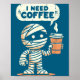 Poster Mummy Halloween I Need Coffee Funny Sarcastic Caff