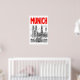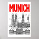 Munich Skyline Poster, Red Title, Black Outline (Travel Wall)