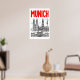 Poster Munich Skyline Poster, Red Title, Black Outline