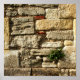 A imagem neste item é de uma velha parede de pedra numa variedade de diferentes tipos de pedra, com uma pequena planta verde. A imagem neste item foi criada de uma fotografia digital, de uma imagem impressa plana, não levantada nem texturizada.