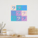 Do you like music themed art? This poster has a pattern of bass clefs done in yellow, blue, turquoise, pink and purple.