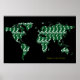 Ideia decor para paredes de um mapa mundial preto e verde com notas musicais
