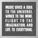 "A música dá uma alma ao universo, asas à mente, voo à imaginação. e vida a tudo" Platão cita Posters e Impressões. Excelente dá para qualquer amante de música.