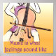 Um desenho de violoncelo sendo tocado por uma garota. Você não pode ver o rosto dela e todo o foco está no violoncelo. O design está em ouro e um roxo macio. Ele tem escrito sob a design, dizendo "Música é como se sente". Um presente fabuloso para um violoncelista, mas seria bem recebido por quem sabe que a música enriquece a sua vida.