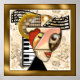 Este poster de parede legal apresenta uma pintura digital original de Leslie Sigal Javorek que é um retrato surrealista, que certamente encantará amantes de música, mentes retorcidas, e para todos vocês, gatos legal que estão se sentindo "no entalhe"!