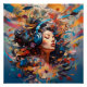 Uma pintura digital abstrato de uma mulher ouvindo música que a rodeia.
