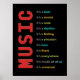 Música inspirou design gráfico. Música, é.....batida, som, nota, ritmo, sensação, emoção, aqui, lá, em todo lugar, nós e universais. Poster de sala de aula maravilhosa para orquestra, vocal e banda. Excelente para instrutores de música e professores de música. Perfeito para todos os gêneros de jazz musical, rock clássico, pop e muito mais.