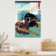 Um ninja, desenhando sua espada de seu esfarrão, se esgueirava sobre um músico tocando Koto com uma mão enquanto na outra levantava um fã dobrado. Uma página da série, Inaka Genji. De um corte original do século XIX (1853), Suma, por Utagawa Toyokuni. Todos os direitos reservados © 2012 padre art