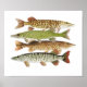 Poster de Arte de um Muskellunge,Tiger Muskie,Pike Norte e um Picerel em Corrente pelo artista da natureza Thom Glace
