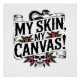 Bold, defiant, and unapologetic, this flat-color tattoo-style illustration showcases the phrase “My Skin, My Canvas” in gothic lettering, featuring sharp serifs. The text is framed within a classic traditional tattoo banner, immediately grounding the design in old-school tattoo culture. At the centre sits a powerful emblem of a coiled snake, thorny roses, and a skull, arranged in a balanced, traditional composition. Each element carries meaning — the snake symbolising transformation and defiance, the roses representing beauty with danger, and the skull standing for mortality and strength 🐍🌹💀 Together, they create a bold visual statement rooted in rebellion and self-experession.