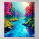 Experience the emotional tranquility of a truly magical fantasy landscape. This stunning artwork features a colorful mountain canyon where a river of glowing emerald water flows through banks of vivid, rainbow-hued foliage. Pink and purple trees frame the scene, creating an atmosphere of peaceful, unreal beauty. The initial concept was created using cutting-edge AI, but was then carefully edited and enhanced by a skilled artist, ensuring its uniqueness and exceptional creativity. This piece is perfect for adding a sense of wonder and calm to any style. Place your order today and embrace the joy of owning this captivating river scene!