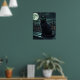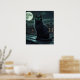 Este design místico apresenta um gato preto majestoso com olhos verdes brilhantes e brilhantes sentados em um telhado. Ao fundo, uma grande lua de cheio etérea ilumina o céu noturno nublado sobre uma linha do horizonte da cidade, criando uma atmosfera mágica e assustadora. É a arte perfeita para quem ama gatos, Halloween, temas góticos, e um toque de fantasia.