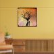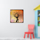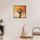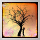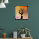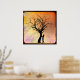 Bonito laranja e rosa-mulher e poster de silhueta-árvore.
