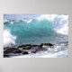 Apanhado no momento de uma bela onda se curvando em direção a uma costa no Havaí.