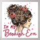 Ilustração encantadora apresentando uma mulher com o cabelo em um pão e flores no cabelo. Dentro na cabeça dela vemos um cheio alto de livros. Há uma mulher escalando uma escada para chegar aos livros. O texto colorido diz: "Na minha era de livros". Esse design está disponível em uma grande variedade de produtos.