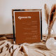 Sinal do cardápio de Bar de Soberano de Casamento. Um tema retro-chic: adote este design de vintagem e na moda para tipografia para sua papelaria de Casamento, com um tema de cor laranja queimada. Fácil de misturar e combinar com nosso material de papelaria semelhante, disponível em açúcar cor-de-pêssego, terracota e castanho. Cores de texto e planos de fundo totalmente personalizáveis.