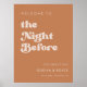 Bem-vindo à Noite antes: ensaiar sinalização de janto. Um tema retro-chic: adote este design de vintagem e na moda para tipografia para sua papelaria de casamento, com um tema de cor de açúcar marrom. Fácil de misturar e combinar com nosso material de papelaria semelhante disponível em laranja queimado, terracota e cor-de-rosa pêssego. Cores de texto e planos de fundo totalmente personalizáveis.