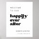 Bem-vindos ao nosso Sinal de Casamento Feliz. Um tema retro-chic: adote este design tipográfico ligeiramente vintage e na moda para sua papelaria de casamento, com um tema clássico preto e branco. Cores de texto e planos de fundo personalizáveis.