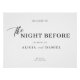 O elegante e mínimo preto e branco "a noite anterior", janto de ensaio, é um sinal de boas-vindas, um poster horizontal, com uma imagem moderna da tipografia de na moda.