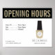 Coordena-se com o Monograma do Salão de Nail no Modelo de cartão de negócios polonês do prego Glitter Dourado até 1201AM. Este design de poster de salão de unhas glamouroso apresenta sua fonte inicial em um belo script, centrado em uma frasco de verniz de unhas dourado falso para um logotipo instantâneo. Uma manchete de brilho dourado correspondente indica "Horas de Abertura" para a sua empresa. Use esta poster para sinalizar ao redor do seu salão. Arte e design © 1201AM CREATIVE | www.1201am.com