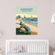 Poster Nantucket Beach Hydrangeas Boat Retro