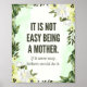 Celebrar o humor feroz e as verdades sentidas das Garotas Ouros com esta poster de "Não é fácil ser mãe". Apresentando uma das citações mais icônicas e relacionadas do show, este design faz uma declaração divertida em qualquer casa. Um presente perfeito para mães, fãs de comediantes clássicos, ou qualquer um que aprecie uma linha inteligente entregue com um timing impecável. Traga um pouco de riso de eterno em sua vida com esta arte nostálgica de parede da era do ouro da TV.