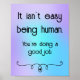 Não é fácil ser um ser humano; você está fazendo um bom trabalho. Palavras com uma espiral digitalmente desenhada à mão e design de coração, perfeitas para uma camisa ou transferidas para outros itens. Projetado no belo Estado de Washington, EUA por uma dupla de artistas freelancos.