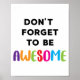Não se esqueça de ser incrível hoje... um poster incrível e mais produtos para pessoas que gostam de citações inspiracionais e motivacionais. O presente perfeito para decoração de quarto, sala de jogos ou placa de escritório para crianças.