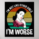 Não sou como outras garotas - sou pior. Este cúmplice sarcástico engraçado é um presente excelente para uma mulher, namorada ou esposa que tem reputação de má decisão ou ser um agitador, e ama sarcasmo. Perfeito para qualquer um com senso de humor. Apresenta uma dona de casa humorística de 1950 contra um pôr do sol angustiado.