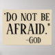Este é um legal poster de cor bege claro com uma poderosa citação religiosa impressa em letras grandes e pretas que diz: "NÃO TENHA MEDO. DEUS.