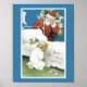 De um cartão de natal vintage: Uma criança loira ajoelha-se para dizer suas preces na véspera de Natal, como o Papai Noel ouve da esquina.