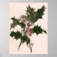 Ilustração vítrea Era Vitoriana design de Natal Feliz com um ramo floral com folhas sagradas, bagas vermelhas e flores cor-de-rosa. Uma flor tradicional de inverno. Felizes feriados e saudações de época!