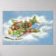 Poster Natal Antigo, Papai Noel Voando em um Avião
