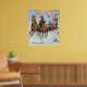 Jenny Nyström, Barn i släde (Crianças de trenó). Aquarela e guache. Modelo para o cobrir da revista de Natal sueca Julklappen (1909). Poster inspirada numa fabulosa pintura de Natal da artista sueca Jenny Nyström (1854 - 1946). O quadro mostra duas crianças pequenas num trenó festivo, desenhado por dois cavalos magníficos. Os cavalos, enfeitados com plumas, bruxelas e colares feitos de muitos e muitos sinos (imagine o som!), parecem correr a um ritmo rápido. Ao fundo está uma bela floresta de inverno, com galhos de árvores cobertas de neve. Atrás das árvores o sol está se pondo, colorindo o céu em uma cor laranja saturada. É provavelmente véspera de Natal, uma das crianças tem muitos pacotes nos braços. O arquivo de origem é muito bom e também muito grande, 4271 x 6447 pixels. Isso significa que você pode escolher qualquer tamanho de poster que quiser, até o maior (XL). Edições digitais (2020) principalmente para dar espaço para textos e outros elementos de design na parte inferior da pintura.