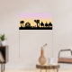 Este é um trabalho de arte panorâmico longo de um céu abanado pelo sol sobre silhuetas da Natividade. As imagens incluem o estábulo com o Bebê Jesus, pastores e os Sábios se aproximando.