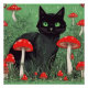 Pôster Natureza do Gato Negro e Cogumelos Vermelhos Selva