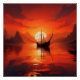 Um trabalho de arte sereno mostrando um veleiro em águas calmas durante um pôr do sol vermelho feroz, acrescentando um toque náutico e tranquilo a qualquer espaço ou produto. Perfeito para amantes do pôr do sol e marinheiros.