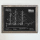 Esta ilustração em estilo blueprint destaca o famoso clíper Flying Cloud contra um fundo escuro, realçando os detalhes intricados do aparelho e da estrutura do navio em linhas luminosas. O estilo visual se assemelha a um diagrama clássico de arquitetura naval, permitindo que os espectadores apreciem a complexidade de um dos navios à vela mais rápidos já construídos. Construído em 1851 pelo mestre construtor naval Donald McKay, o navio fez parte de uma nova geração de clíperes extremos projetados para transportar carga através dos oceanos a velocidades sem precedentes.