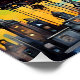 {{{ AI ART }} Três aeróstatos que voam no céu cósmico acima de uma linha do horizonte da cidade.