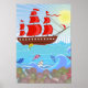 Poster Navio pirata vermelho ilustrado